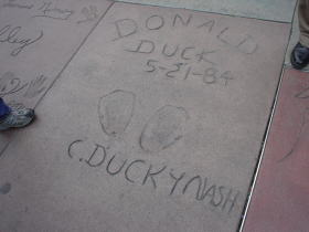 【ロサンゼルス国際空港】 【ハリウッド観光】 【ダウンタウンディズニー】 空港でツアーのガイドさんと合流します。男性の方。 ガイドさんに案内してもらうのは今日だけ。明日からは家族の自由行動。 だからしっかり今日説明を聞いておかないと…! ![]() まずハリウッド観光から。 ハリウッド、及びロサンゼルスは治安が悪く、観光地としては適してなかったらしい。 しかし地元の人たちの努力により結構きれいになった。 僕も今回ハリウッドに行って、まさかこの街が昔…!と思ったほど。 ![]() この道に赤いじゅうたんが敷かれ、なんとかの授賞式が行われると。 アカデミー賞…だったかな。すごくきれいな所です。 ![]() そしてこちらはチャイニーズシアター。 伝統的な中国の館をイメージして建てられた映画館。 そしてこちらの足下には…… ![]() 有名人達の足形手形が記されています。 こちらはドナルドダック。1984年5月21日…となっていますね。 ![]() 一段落ついたのでホテルの方へと向かいます。 アナハイム・ヒルトンホテル。クリスマスなので巨大なクリスマスツリーも。 【ロサンゼルス国際空港】 【ハリウッド観光】 【ダウンタウンディズニー】 |