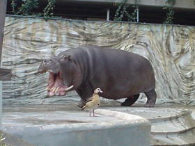 【その1】 【その2】 【その3】 【その4】 今日はずいぶん人が多いでんなーー。 動物園も久しぶりだったので、なんだか小学生に戻った感じだった。 ![]() キリン。ちなみにキリンは鳴くそうですなぁーー。 是非とも鳴いたところを見てみたい。 ![]() サイ。なんかアンタのまわりくサイよ〜。(アハハハ) 少しは清潔にしないとだサイよ〜。(アハハハ……親父ギャグっていうんですね) ![]() カバ〜!カバカバカバカバカ……バカバカバカ・・バカ? と、いうよりもカバの前に写っている鳥は一体なんなのだーー!? ![]() アルマジロ。コイツもすばしっこくて写真を撮るのに苦労した! でも本当にまるまるらしいねー。ダンゴムシの仲間…? ![]() ここから先は夜行性動物を紹介していた。 残念ながら暗すぎて写真は写らない。そしてフラッシュ撮影は禁止。 なので写真はないのねーん。すみません。 この看板を見たとたんお父さんが「オマエの仲間がいるんだな」と言った。 ………はい。今度から早く寝ます。 ![]() フラミンゴ!ツルと似ているけど、そこんとこどうなの?ツルさんよ。 でも僕的にツルの方が美しく見えるんだけれど…。 久しぶりの動物園!すっごく良かった。来て良かった。 今度は水族館に連れてってーー♪(親:勉強もしなさい!) 【その1】 【その2】 【その3】 【その4】 |