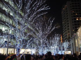 お父さんと六本木をぶらぶらした。六本木にはあの最近発明されたという青色の発光ダイオードを使用した美しいイルミネーションがあるので、夜の6時くらいになるとすごい人だかりに。お父さんが今年の年賀状はここで撮りたいみたい。 ![]() 六本木ヒルズ内にクリスマスツリー発見~~~! このツリーも青色の発光ダイオードを使用している。青色ってきれいだなぁ! ![]() 六本木ヒルズ~~~~。 ![]() それで、これがその美しきイルミネーション!! とにかく人が多くてディズニーランド状態。 →前回2月の報告 ![]() 僕も結構頭でっかちじゃけど、まぁ、勝ったかなぁと思われた一瞬。 あんた顔でかすぎじゃろう……………。 |