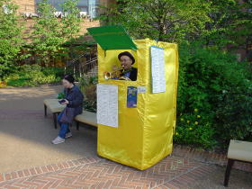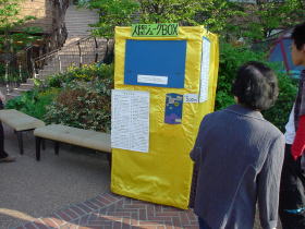 【その1】 【その2】 今日は友達の家族とサイクリングに行く約束をしている日。 岡山から来ているおばあちゃんは、いとこの家に行っているので今日はいない。 ![]() 晴海にある「トリトン」というところまで自転車で爆走。 もうお昼の時間なので、まずは昼食をとることにする。 ![]() …にしても、すごくきれいなところ。 ちょうど今の季節が春だから、お花もたくさん咲いていてきれい。 ![]() タイのラーメンをごちそうとなる。(他にもおにぎりをいただいた) 中国のラーメンではなく、タイのラーメン。んんん…どんな感じなんだろう。 ![]() うわぁ!ここのタイ料理屋のポスター、ずいぶん気合い入っとる! ![]() こちらがタイのラーメン。あっさりしていてとてもおいしい。 中国のラーメンとはまた違った魅力。ちょっと、はまってしまったかもしれない。 ![]() ![]() なんとも春の雰囲気が漂う美しい場所で、友達の家族と1時間くらいおしゃべりをしてしまった。いや、1時間以上だったかもしれない。んん〜、のんびり。 ![]() 人間ジュークBOXという怪しげな箱。 200円を入れると“変なおじさん”が出てきてトランペットで演奏してくれるらしい。 200円ねぇ〜、100円だったら入れる気になるけど。 ![]() 写真の左にいるおばあさんが200円を入れる。 すると「ホワワワァ〜ン」という効果音と共にトランペット吹きが登場。 地上の星を演奏していた。演奏し終わるとホワワァ〜ンという音と共に扉が閉まる。 ![]() しばらくすると、人間ジュークBOXが動き出した! 奥の方へ行ってしまった。周りの人はポカンと口を開けてその様子を見つめる。 ![]() その後“まいう〜”なココアをいただく。 ココアを飲んでいる間もペチャクチャいろんなことをしゃべったりした。 【その1】 【その2】 |