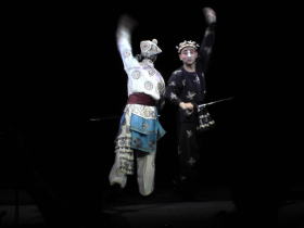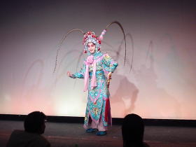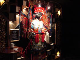 【その1】 【その2】 「時の回廊」をくぐり抜けます。 ![]() 当時の上海で活躍していたスターの写真がズラリと並べてあります。 中にはスターってわけじゃないけど有名な魯迅の写真も。 ![]() そしてやっと食事をするところに出る。 いろ~んなお店があり、お客もたくさんいるよう。 ![]() 春巻き、餃子などなどを頼む。麻婆丼も頼んだけれどすごく辛い。 でも餃子がおいしかった。ボリューム満点。 ![]() 食事も終わって、のんびりしながら京劇を見る。 中華の音楽にのって、女性が踊る。 この女性の方は「呂琳(ルー・リン)」さん。 ![]() その後別の京劇があったので見た。「三岔口(サンチャーコウ)」という話。 「三岔口」 三叉路に面した場所にある宿屋の主人・刘利华は、焦赞という名前の豪傑をかくまっていました。その宿屋に、偶然、焦賛の親友である任堂惠が泊まります。実は、任堂惠は焦赞を助けるために旅してきたのですが、宿屋の主人は、てっきり任堂惠が焦赞を殺しに来たのだと誤解します。夜更け、宿屋の主人は任堂惠の部屋に忍び込み、殺そうとします。二人は何も見えない闇のなかで戦います。最後に焦赞と宿屋の主人の妻が駆けつけて、みんなが実は仲間だったことがわかり、めでたく幕となります。 この「三岔口」を演じてくれたのは「罗家康(ルオ・ジアカン)」さんと「刘涛(リヨウ・タオ)」さんの二人。京劇ってもっと堅苦しいものかと思っていたけど、この劇を見てすごく京劇が楽しいものだとわかった。んん~、京劇すごい! ![]() 続いて二胡(にこ・アルフー)と揚琴(ようきん・ヤンチン)の演奏を聴く。 二胡はとても有名で、ほとんどの中華風音楽に二胡の音があるのでは?と思う。 二胡の演奏者は「沈百良(シェン・バイリャン)」さん。 そして揚琴の演奏者は「王壁蕊(ワン・ビールエ)」さん。 ![]() いろいろ京劇の服装等が展示してあったので見てみる。 すごく派手ではあるけれど、色鮮やかで美しい。 ![]() ぼぼよるも調子にのって京劇の服装を着て記念撮影。 んん~、なんか中国人になった気分でいい感じ。 【その1】 【その2】 |