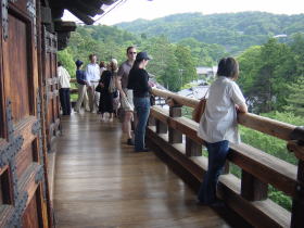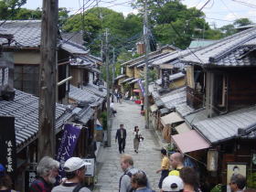 【その1】 【その2】 【その3】 清水寺を見終わった後はそろそろ昼食タイム。昼食を食べなければ。 三年坂にマクドナルドがあると地図で確認しておいたので、マクドナルドくらいの安い所を選んだ方が無難かと思ったのに、その地図は古い地図らしく、マクドナルドは既につぶれているとの情報。しようがなく、どこで食べようかと歩き回る。 ![]() みんなお腹がすいて歩くのも面倒のようだけれど、僕はカメラ片手に結構シャッターをきっていました…。いかにも京都!みたいな風景が続くもんだから感激、感激。 ![]() 「八ツ橋庵」というお店に入って食事をすることに。暑かったので、冷たくてスッキリしたもんがええと思って冷たいおうどんを頼む。結構まいう〜。 ![]() その後に「京都護国神社」という所に行くことに。坂本龍馬のお墓があると聞いて行ったのだが、入場にお金がいる!なんで墓を見るだけに金を取るんじゃ!と思ったが、せっかくなのでお金を出す。んん〜、得なのか損なのか。 ![]() 向かって左側が坂本龍馬の墓。…心配しなくても心霊は写っておりませぬ。他にも高杉晋作の墓があったりと、有名な人の墓が結構あった。 ![]() その後に石川五右衛門の「絶景かな、絶景かな」で有名な南禅寺へ行く。お金を払えば山門に上ることができるということで上ることに。五右衛門の「絶景かな」を体験してみることに。はたして“絶景かな?”(ギャグセンスなくてスミマセン!) ![]() 上る階段は非常に急!ちょっとでも足をすべらせるとズドドドドと落ちていきそうな感じ。お年寄りは隣にあるロープにしっかり掴まりながら一生懸命上っていた。上っている途中に下を向くと結構怖いものがある。ほえ〜。 ![]() 上ってみると結構気持ちがいい。しかし、高所恐怖症の僕にとっては過酷な環境。脚立に上るのもあまり好きではないくせに…。でも下さえ見なければ景色の眺めもいいし、上る価値アリ!と思った。絶景かな、絶景かな。 【その1】 【その2】 【その3】 |