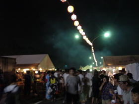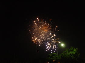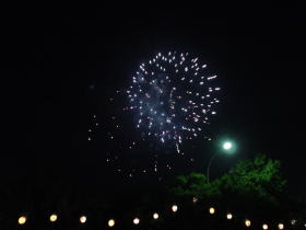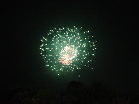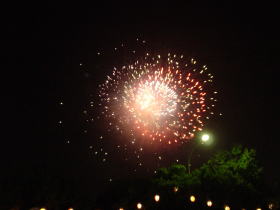 【その1】 【その2】 今日は近所の福田運動公園で花火大会が行われるのでおばあちゃんと見に行くことにした。おじいちゃんは家で留守番らしい。しかしおばあちゃんの話によると、おじいちゃんの方が毎年「行こう」と誘ってくるらしい…。本当は行きたいのカナ? ![]() いつもは静かな公園なのに人がたくさん〜〜! 見たところ、あんまり出店がないようだけれど…どこにあるのかな。 ![]() 駐車場の方に行くと沢山出店があるある!!そして人もいっぱい!! ここでおばあちゃんが「東京の上野みたい」とポツリ。ああ、アメ横のことか! ![]() 花火の始まり!と、いうことでボン!ボン!ボン!すごい連発。 あたりからは「オォ〜!」という歓声。 ![]() しばらくすると少しおとなしめに。 電車でいう「惰性走行」みたいな感じ?? ![]() たまや〜。 ![]() お疲れさまでした。 【その1】 【その2】 |