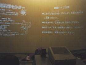 【その1】 【その2】 今日は近所の科学館に僕が行きたいとおばあちゃんにお願い。その科学館は「ライフパーク倉敷」と言うんだけれど、プラネタリウムや迫力のある映画を見ることが出来る。それが見たかったので、お願いして連れて行ってもらうことにした。 ![]() プラネタリウムの上映まで時間があるので、科学館の方でちょっと遊ぶことに。 最後に行ったのが5年くらい前?なので懐かしいというか、久しぶりな感じがした。 ![]() 太陽は直接見ると目を痛める。…と、いうことで太陽を見られるようにしたのが、この映像。今現在の太陽の様子を見やすいように映している。黒点があるのが分かる? ![]() パソコンのゲームで遊んでみるおばあちゃん。 よく見るとパソコンは「Windows3.1」。古い〜〜〜。歴史を感じる。 ![]() プラネタリウムの時間になったので、劇場へと移動。 やがて上映が始まって星の説明が始まったんだけど…眠い。眠すぎる! 本当に夜空を見上げているような感じ。だから…眠くなったのかな? 【その1】 【その2】 |