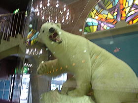 【その1】 【その2】 夜はご飯食べてからおばあちゃん達と近所のボウリング場へ行った。おばあちゃん達は土・日を抜いた平日はいつもボウリングをしているらしい。 ![]() 写真を見て分かった方もおられるのではないでございましょうか? このボウリング場は去年岡山に帰省したときも行った所ですよ。そう、水島ボウリング会館です。見たところ、去年と変化はないようだけど…。 ![]() あっ、白クマがおる。ここのボウリング場はライオンがおったり、トラがおったり、変わったボウリング場だな〜。(でも、この水島国際ボウリング会館で岡山国体のボウリング競技が行われるのだ。)歴史はあるみたいですよ。ここ。 ![]() “当館内の展示品はすべて販売いたします ご用命ください” ……え? 販売しているってことか。 だったら、あのライオンとか白クマも買えてしまうんかな。 ![]() ふ〜疲れた。本日の最高は…133点だった…。 まだまだボウリングができん!僕も老後はボウリングするぞ! 【その1】 【その2】 |