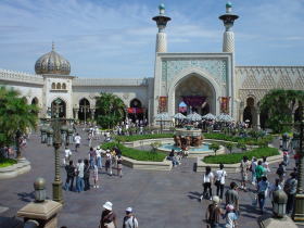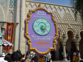 ![]() 少し時間に余裕ができたので、インフォメーションセンターに中国語のマップをもらいに行くことにした。インフォメーションセンターに入ると「こんにちは!」とキャストが笑顔で話しかけてくる。僕は日本語の分からないようなふりをして「Chinese」と英語で言うとキャストは「How many?」と聞いてきたので「three」と言う。これで中国語のマップが3枚手に入った。もちろん日本語でくださいと言ってもくれるけど、ちょっと…中国人になってみたかったので…中国人のふりをして行ってみました。 ![]() 続いて「アラビアンコースト」へ。中国語のマップには「阿拉伯海岸」と書いてある。なるほど「アラビア海岸」という意味なのか。これでカタカナ語は怖くないぞ!…と、いうこどアラジンのマジックランプシアターを見に行くことに。 ![]() 待ち時間はここから20分。劇だから1回で大量のゲストを入場させる。だから…並んでいる人が多くても、時間は少ないってことか。しかし、いくら20分でも、夏という季節に直射日光のあたる場所で長時間じぃーっとしているのでつらい。 ![]() アシームが「メガネかけて♪」と言うまでメガネはかけないこと! 劇場に入るとアシームがステージの上でカギを探している。「君、カギ見なかった?」とお客さんに問いかけるアシーム。お客さんは「見てない」。アシームは「そう?ありがとう」とカギ探しをつづける。すると子供が「カギあったよ」と発言。アシームは「ドコドコ?」とあわてて探し出す。アシーム役の人…大変だなぁ。全部アドリブだぁ。今度は「カギは食べちゃった」というお客さんが出てくるかも。そうしたらアシームはどうするんだろう。 ※アシーム:この「マジックランプシアター」の主人公 |
