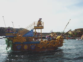 【その1】 【その2】 【その3】 【その4】 お昼の2:30から「ポルト・パラディーゾ・ウォーターカーニバル」があるので、それを見に行くことに。30分くらい前から席取りをして待つ。中国語のショースケジュールをぼけーっと眺めていると「樂園海港水上嘉年華會」と書いてある。多分これが「ポルト・パラディーゾ・ウォーターカーニバル」を指しているのだろう。 ![]() 始まる5分くらい前になると一隻の船がやって来て、その船上にいるお兄さんが何かのお話をし始めた。それが眠たくて眠たくて…はよーキャラクターの船出してやー、みたいな感じだった。ごめんね、お兄さん。でも本当に思ったんよ。 ![]() その後ミッキーマウスなどがそれぞれの船に乗って搭乗。メディテレーニアンハーバーの湖をくるくるまわる。っで、そのショーは30分程で終了。んん…なんとも言えない感じ。ショーはディズニーランドの方がおもしろいと感じる。 ショーの後は、ファストパスを取ってある海底二万マイルに乗る予定。まだファストパスの時間になっていなかったので、少し自由時間をもらって、1人でぶらぶらすることに。お買い物も兼ねて園内をぶらぶらしてみよー。 ![]() お金の池。これが全部本物だったら…と考えてしまう。 しかしこの噴水のスゴイところはこれだけではない。中の水は温水なのだ! 手をいれてみると「ぬっく~い」。皆さんも行った折りにはお確かめください。 ![]() ![]() ギョウザドッグの為にあれほど並ぶのか、とか偉そうに言っていたぼぼよるも、小腹がすいてきたので並んで買うことに。食べてみると…まいう~~!確かにギョウザ。肉まんのような感じではない。中はギョウザ。でもまいう~。 他にミッキーの携帯ストラップを購入した。600円也。ちょっと高い? ![]() 海底二万マイルの時間となったので、みんなで海底二万マイルへ入る。このアトラクション、初めてディズニーシーに来たときは本当に海底に潜るんかと思っとったら、実際はただの室内を動いているだけで、いかにも海底におるんよ~みたいなふうに見せているというトリック。最初はすごくショックというか残念に感じたのを覚えている。 |