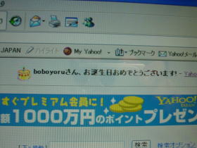 なんとなくMy Yahoo!を開いてみると「boboyoruさん、お誕生日おめでとうございます!」という文字が。