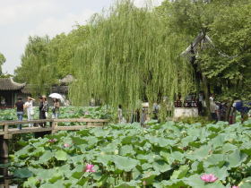 【散歩】 【拙政園】 【刺繍研究所】 【東方明珠塔】 【友谊商店】 【雑技団】 今日はまず「拙政園(せっせいえん)」というお庭に行く。中国四大名園の1つであり、国の重要文化財にも登録されています。日本庭園とはまた違った典型的な中国庭園で、これこそ中国や~!って感じれそう。 ![]() 中国語でチケット売り場のことを「售票处」という。でも拙政園では「售票楼」と書いてある。ふむふむ、处が楼になったわけか。それなら「售票岛(チケット販売島)」とか「售票星(チケット販売星)」とかへんちくりんだけど応用ができるね。 ![]() ちょうど今が夏なので、緑がとても美しい~! 拙政園は庭の半分以上が池。そう、池をうまく利用した庭園なのねん。 ![]() この不思議な形をした岩は太湖でとれた岩。その昔太湖は蘇州の西にあり、そこにある自然の浸食によって削られた岩を庭園に飾るのが流行したらしい。太湖といえばサントリー烏龍茶のCMでも流れた「山青水明幽静静♪」が太湖船って歌ですよね。 ![]() ハスがお池にたくさん。 ![]() お花がきれい~。 【散歩】 【拙政園】 【刺繍研究所】 【東方明珠塔】 【友谊商店】 【雑技団】 |