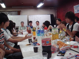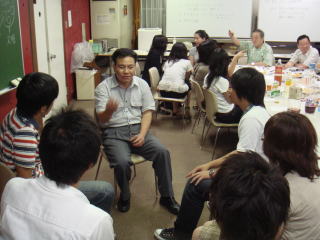 【 その1 】 【 その2 】 【 その3 】 【 その4 】 全体の発表が終わったら、今度は懇親会。 やっぱり学校行事だから…と、お酒はないけどお菓子はたーーくさん。 ![]() 大量のジュースとお菓子を前に。 ![]() アジアントリオ。 ![]() 中国福建省からやって来た、客家人の蔡老師!!!!! 日本語がかわいいーーーーー。 ![]() 自分が大学生だった頃を熱く語る林さん。 ![]() 先生たちと語らうひととき。 ![]() 蔡老師と写真を一枚。蔡老師と中国南方方言について語らせてもらった。 あと…中国共産党の人権侵害とか、情報規制なんていうダークな話も。 ![]() うちの学科の教授であり、同時に大学の副学長でもある馬淵先生のお話を聞く。 ![]() イスラムが専門の小林先生のお話を聞く。ちなみに小林先生は僕と同じ高校出身の岡山人。 ![]() 蔡先生の話を聞くのは…男性陣とマリコさん。 ![]() 吉野先生グループ。でも右端できちんとピースしとるツノちゃんにも注目♪ 【 その1 】 【 その2 】 【 その3 】 【 その4 】 |