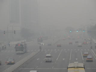 今日の北京は曇り空。そして数キロ先が見えんほどに霧が。